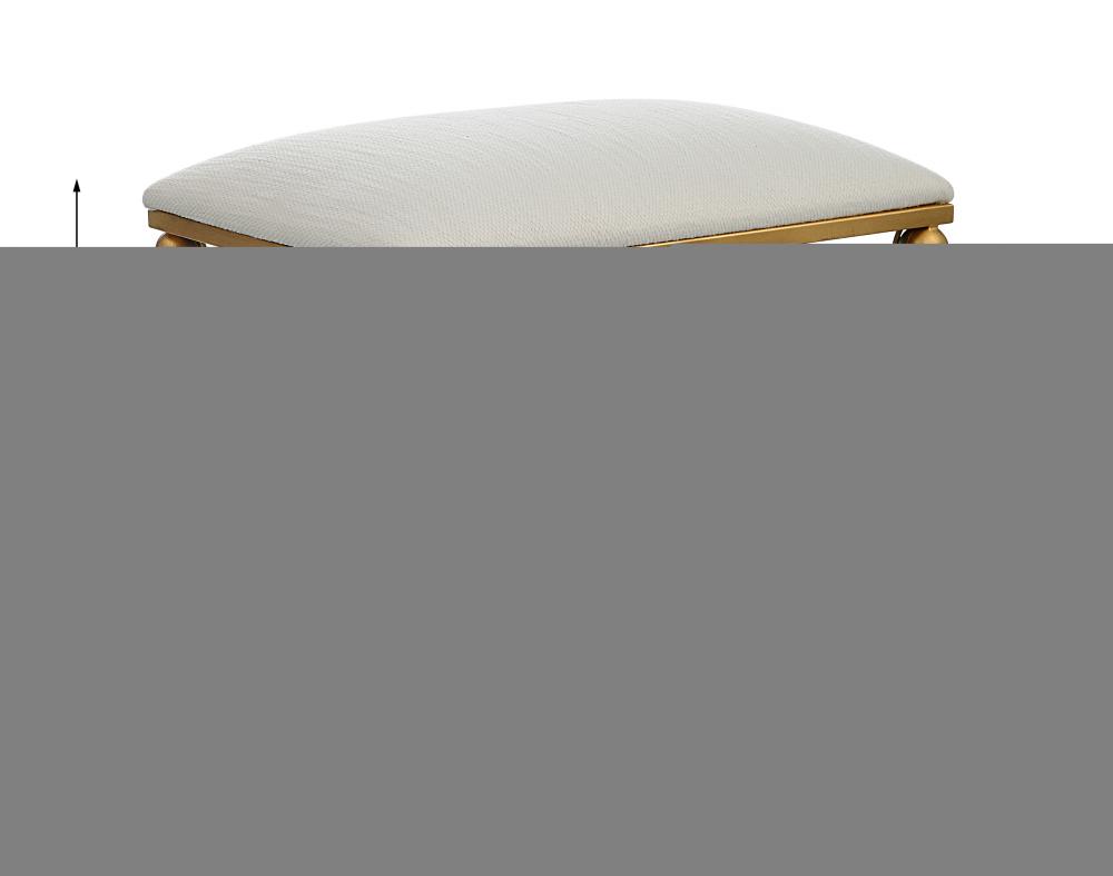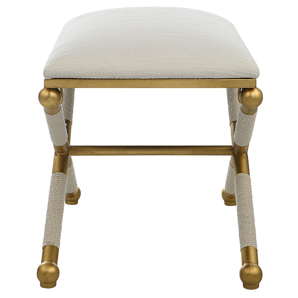 With Classic Simplicity, This Small Bench Features A Smooth Iron Base Finished in An Elegant Gold Leaf with Braided White Rope Detailing, Upholstered in A Crisp Textured White Polyester Fabric.