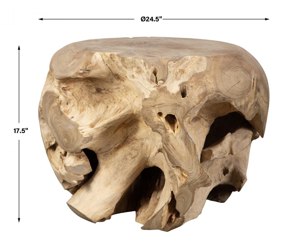 Formed By Nature The Sola Side Table Provides Organic Beauty and Function in A Natural Bleached Teak, Serving As A Decorative Art Piece While Smoothed on Top for Functionality. Each Will Vary in Size Due to Being Uniquely Handcrafted. Cracks and Variations in Grain Are Normal.