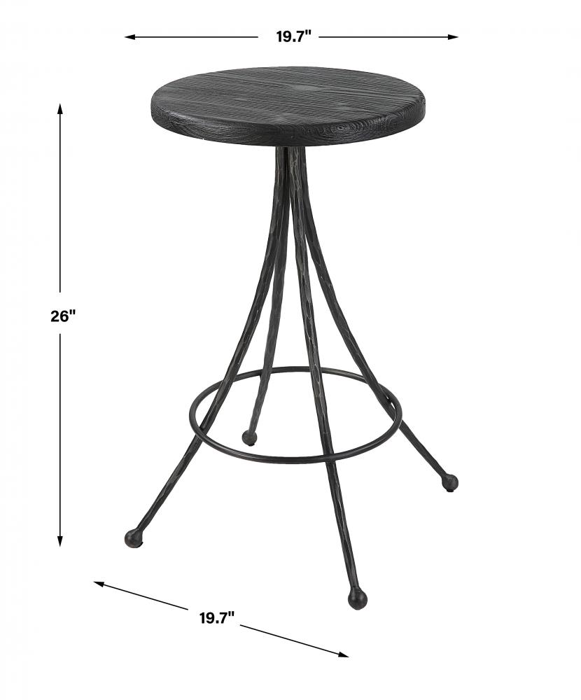 Add Industrial Flair to Your Kitchen with This Sturdy Counter Stool. Crafted of Solid Pine with Textured Grain Lines Finished in Matte Black on A Heavily Chiseled Iron Base in Natural Aged Black Finish.