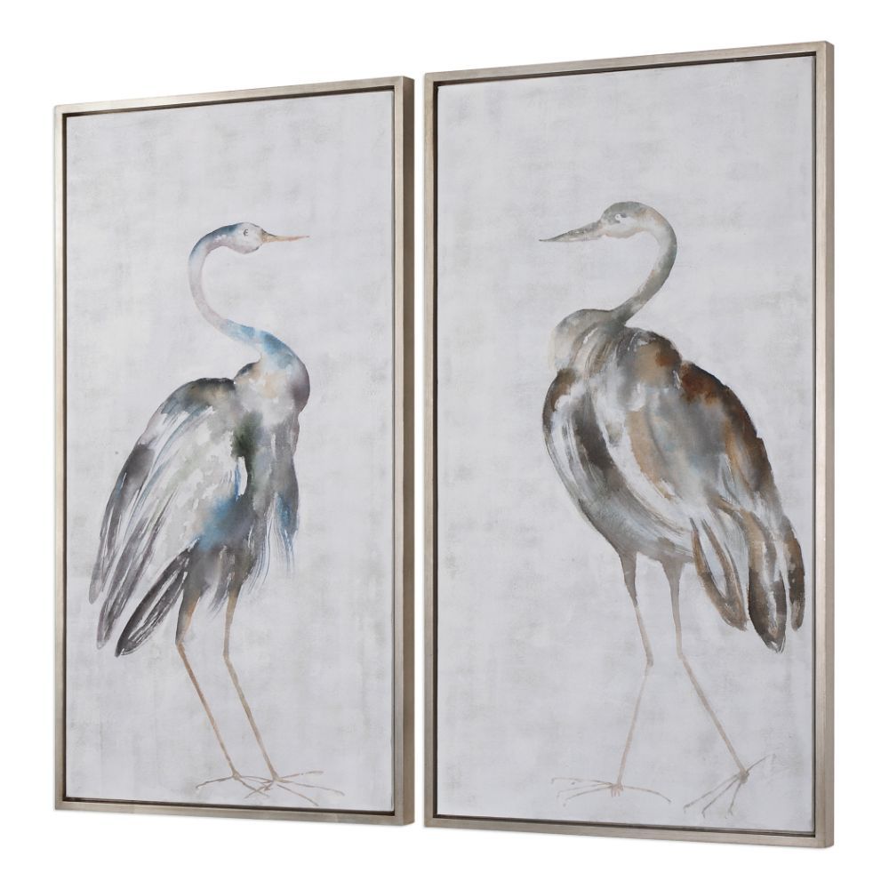 Showcasing A Classic, Coastal Design, These Hand Painted Canvases Seamlessly Blend Into Any Transitional Design. This Artwork Utilizes An Understated Color Palette in A Watercolor Style for Added Definition. A Champagne Silver Gallery Frame Completes Each Canvas, Which Has Been Stretched and Attached to A Wooden Frame. Due to The Handcrafted Nature of This Artwork, Each Piece May Have Subtle Differences.