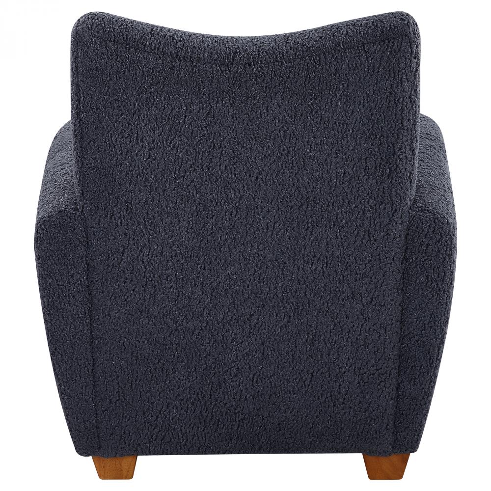 With Its Curved Track Arms and Supportive Back, This Cozy Accent Chair is The Perfect Balance of Comfort and Style. Fully Upholstered in A Slate Gray Faux Shearling and Accented By Walnut Stained Wooden Feet. Seat Height is 18".