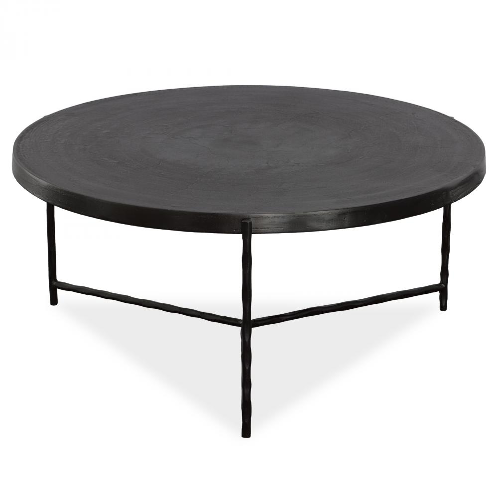 Modern Textures Are on Display in The Trellick Coffee Table. Featuring A Cast Aluminum Top in Oxidized Black, Resting Within A Chiseled Black Iron Frame.