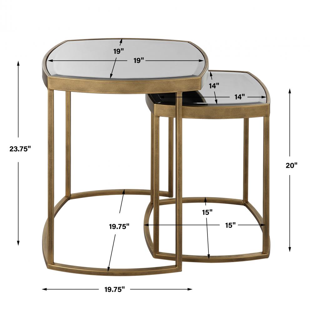 Gently Curved Lines of The Vista Nesting Tables Are The Perfect Functional Statement, with A Boldly Framed Top Inset with Beveled Mirror Finished in Antique Gold. Sizes: S-15"x15"x20", L-20"x20"x24"