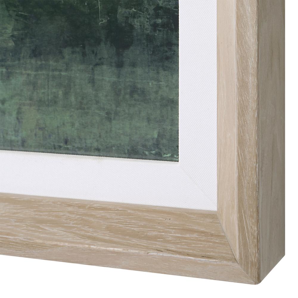 Depicting A Serene Landscape, This Set of Two Prints Uses Neutral Tones Paired with Varying Green Shades From Deep Emerald to Chartreuse. Each Print is Complemented By A Natural Linen Liner and A Pine Wood Frame with A Light White Wash. Artwork By Paul Duncan.