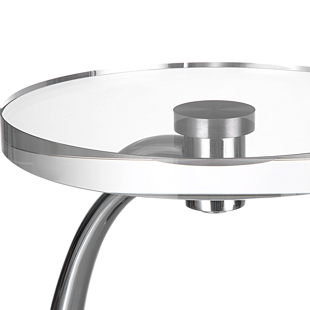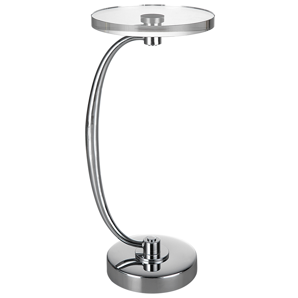 Minimal Yet Sophisticated, The Waveney Drink Table Displays A Sleek Curved Base in Polished Nickel Plated Iron with A Thick Crystal Top.