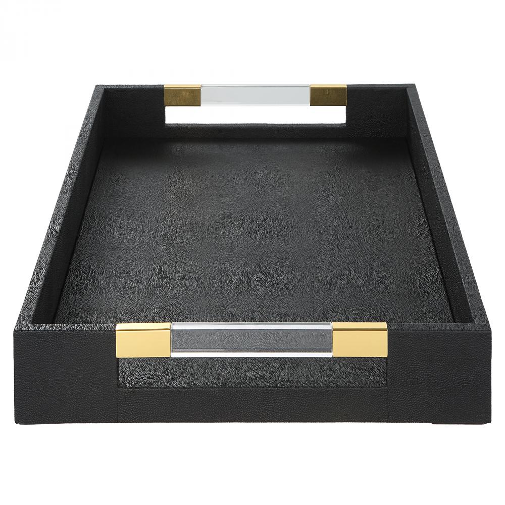 A Classic Silhouette with Modern Touches, This Tray is Covered in A Black Faux Shagreen with Sleek Acrylic and Brass Handles.