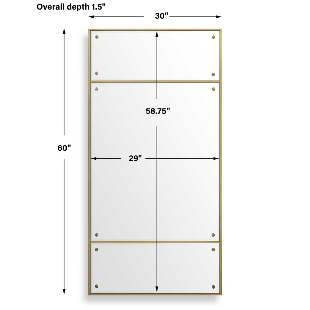 This Rectangular Mirror Features A Stainless Steel Frame Finished In A Rich Plated Brass, Complemented With Dark Bronze Button Medallions. May Be Hung Horizontal Or Vertical.
