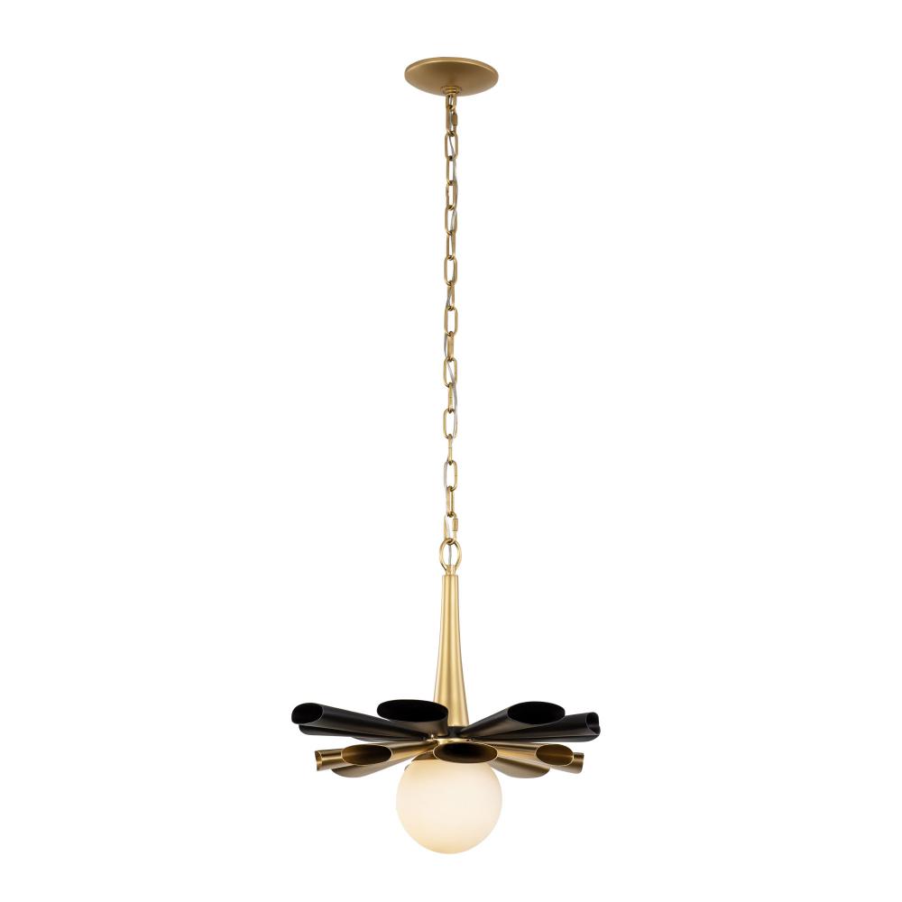 Hand-forged Tapered Oval Tubing. Hand-applied Matte Black and French Gold. Recycled Opal White GLass Globe