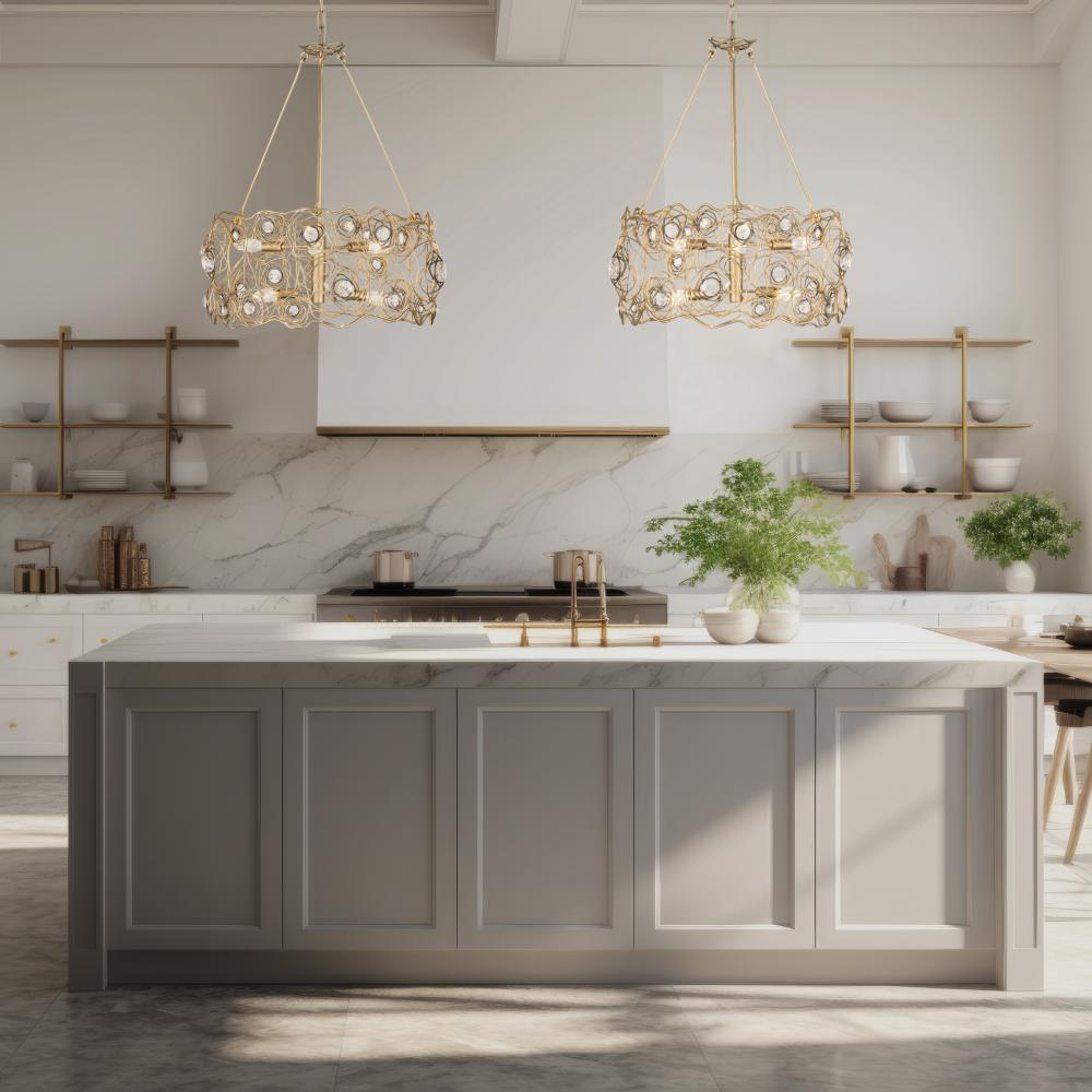 A rose is a rose is a rose, until of course, it is reimagined by Varaluz. Inspired by a drawing that appeared in the Japanese design magazine, Shin-Bijutsukai (New Oceans of Art), Ethereal Rose marries swirling lines of varying thicknesses and irregular curves with a mid-century metal work technique. At the center of each rose is a multi-faceted round optic quality crystal element. The hanging stems and secondary canopy complete the wispy design motif. A Havana Gold hand-painted multi-layered finish features a unique ombre that gets darker with additional antiquing around the crystal centers.