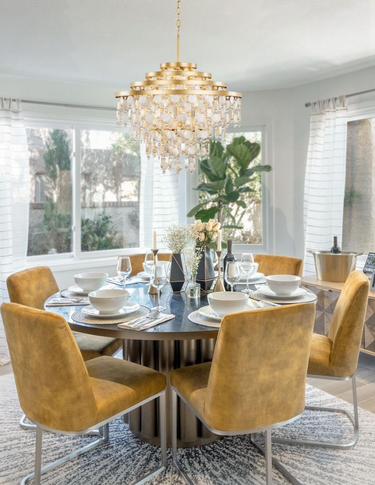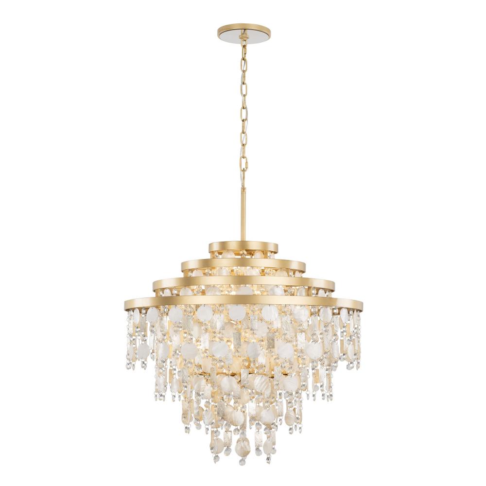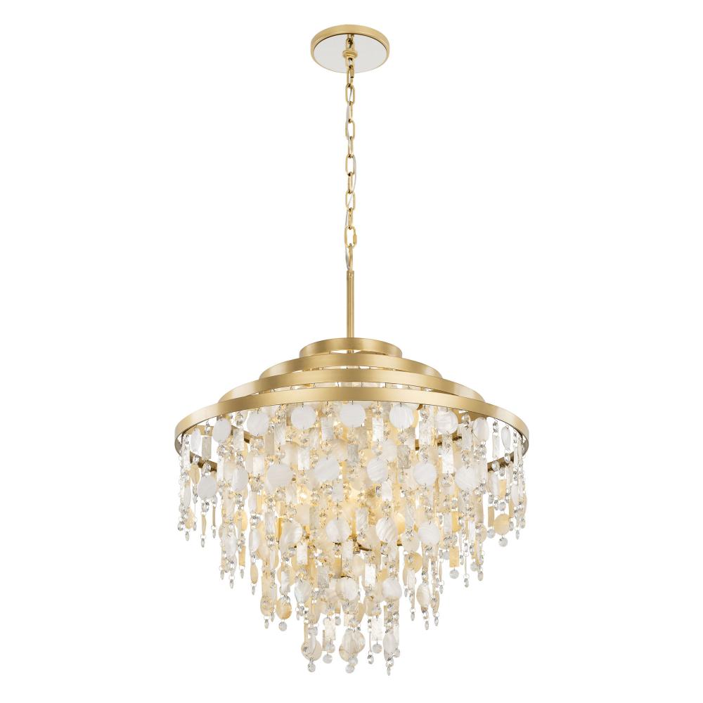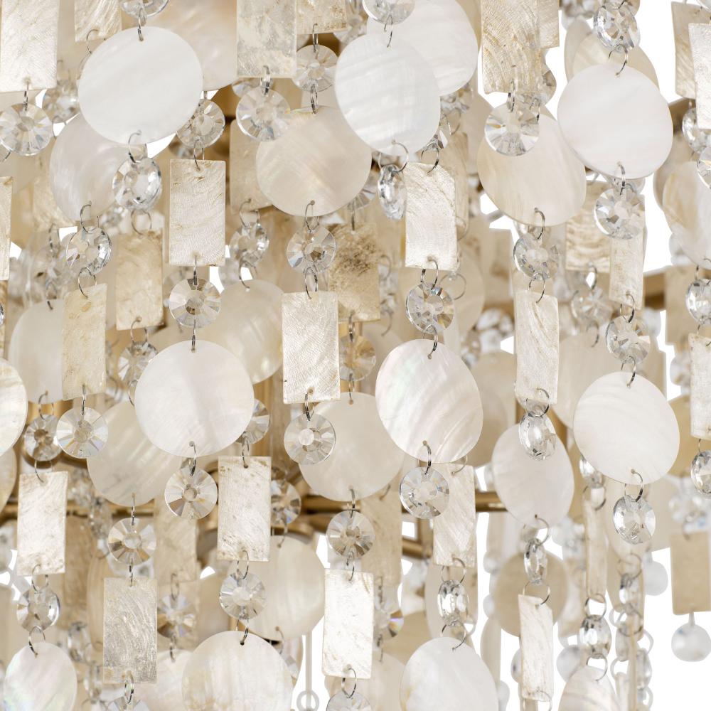 The word Kalani is the Hawaiian word for “of the heavens or sky.” To some, it also has noble connotations meaning “royal one.” For Varaluz, it is the culmination of a very regal collection of metal work styled in the grand traditions of Venetian glass and crystal chandeliers found in Smithsonian archival holdings. What makes the Kalani collection most striking is that we work in sustainable Capiz and upcycled Kabebe shells (reclaimed after food harvesting) with lead-free crystal to create a warm and inviting take on a glam fixture from days gone by, now reimagined for the modern day.
