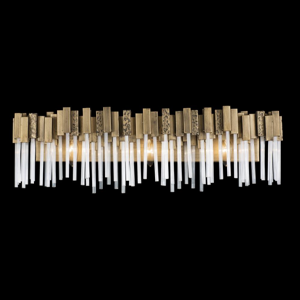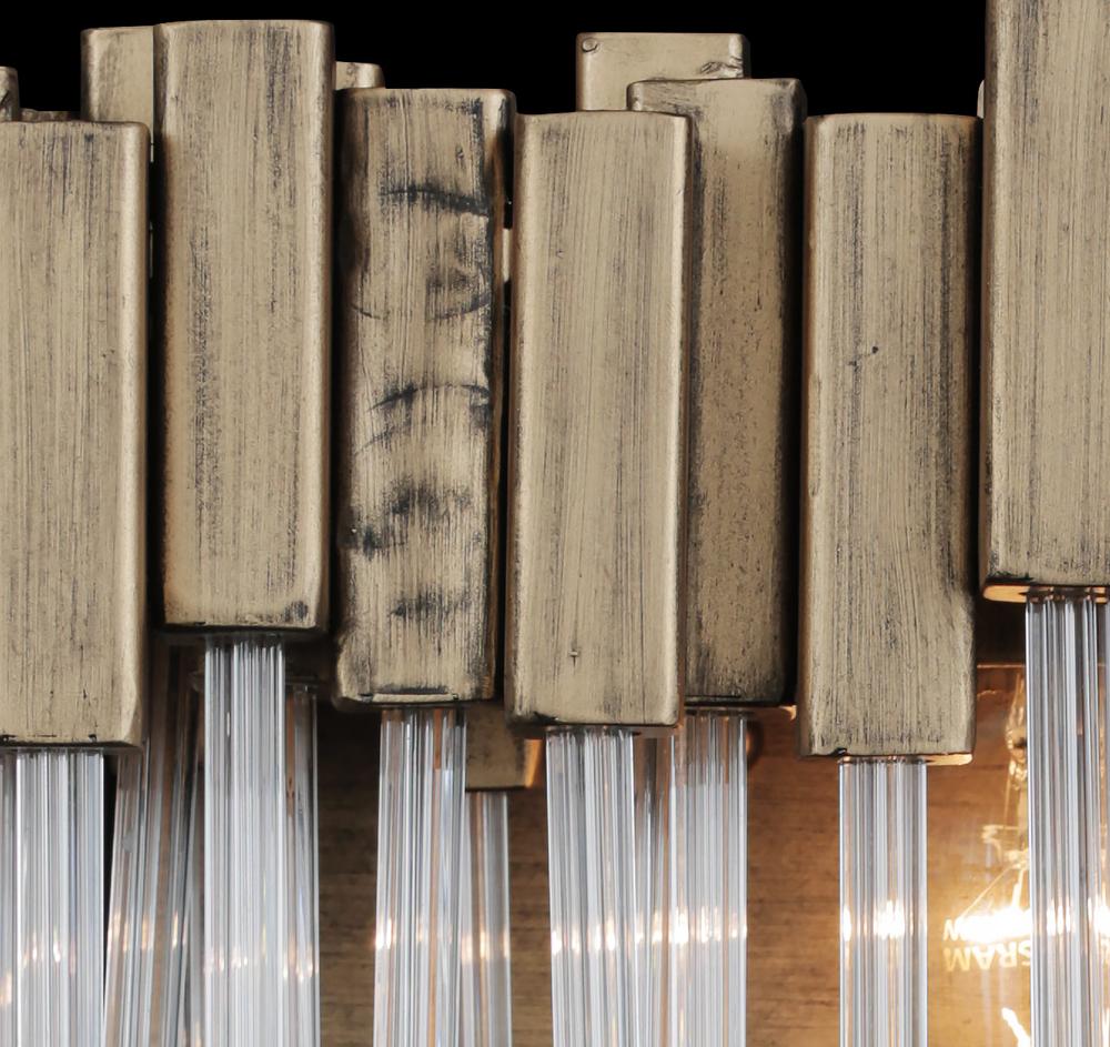 Hand Forged Recycled Steel. Handsomely Hammered Elements. Fluted 70'S Inspired Clear Glass Rods.