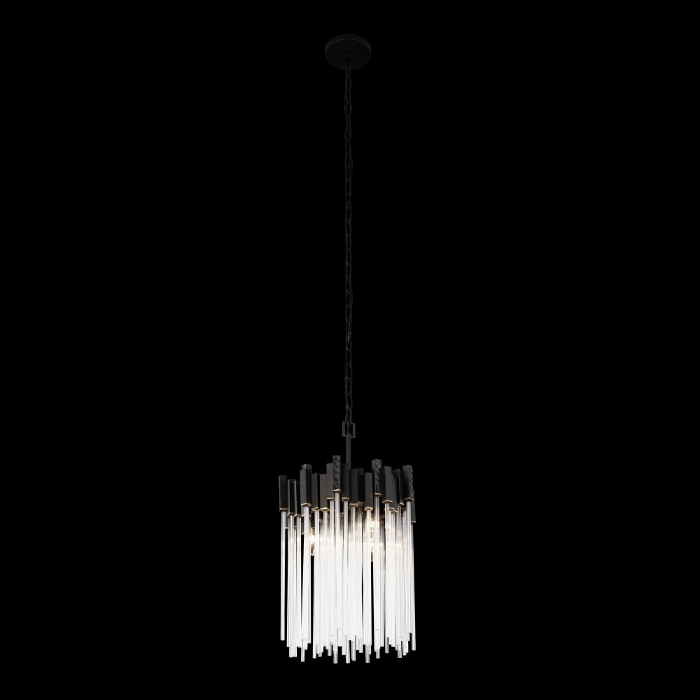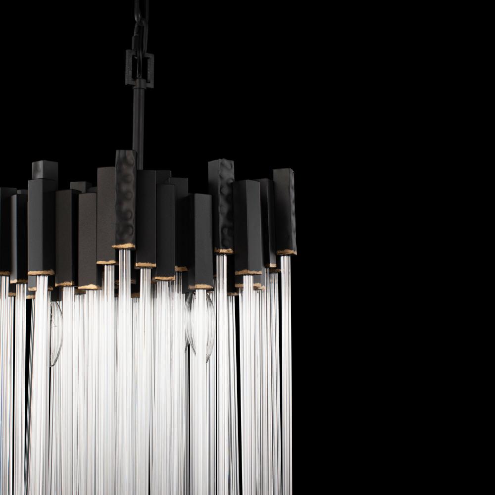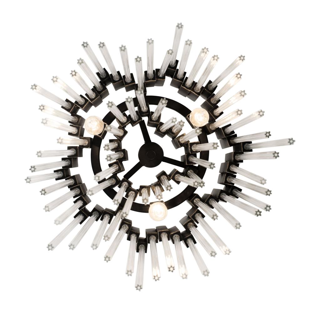 Hand Forged Recycled Steel. Handsomely Hammered Elements. Fluted 70'S Inspired Clear Glass Rods.