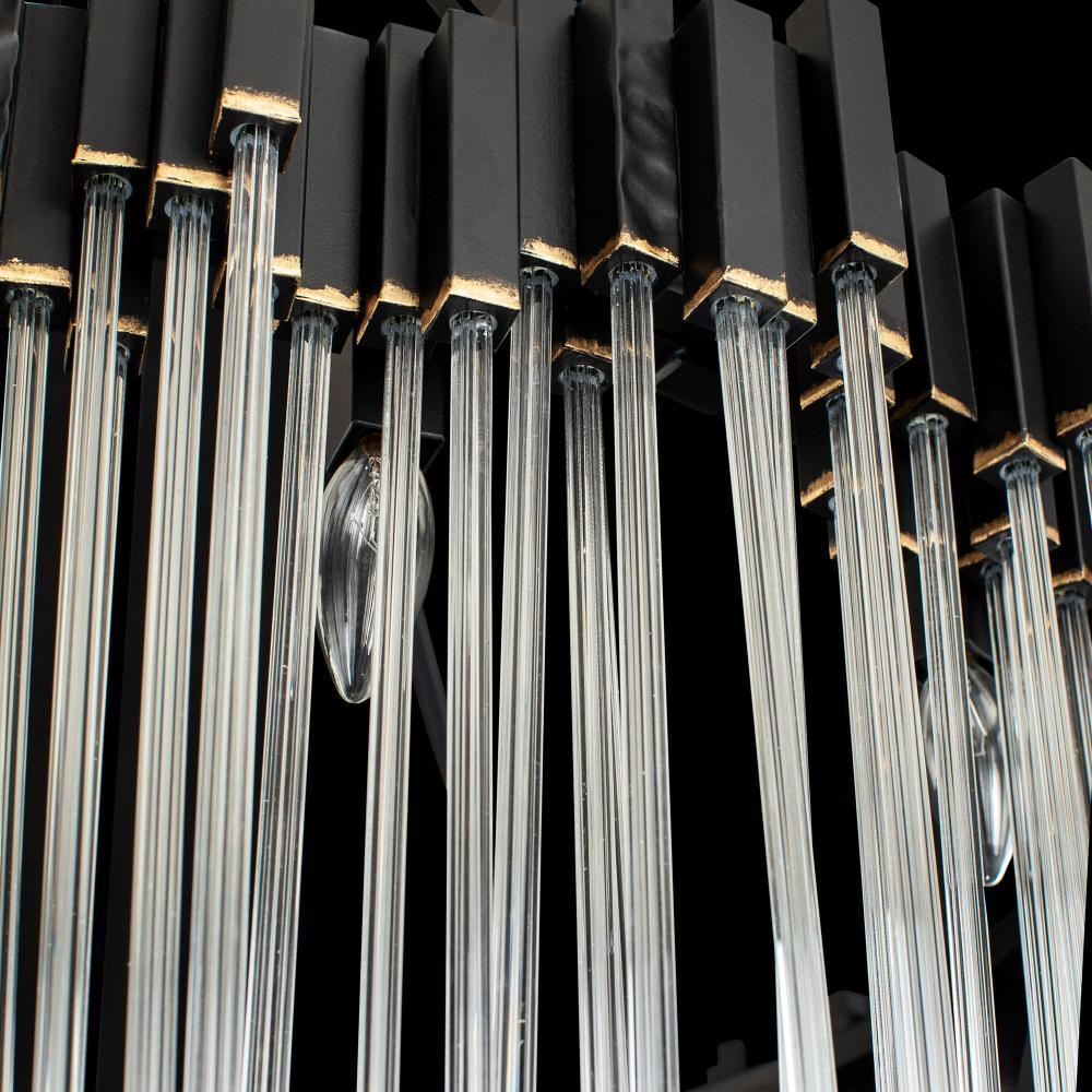 Hand Forged Recycled Steel. Handsomely Hammered Elements. Fluted 70'S Inspired Clear Glass Rods.