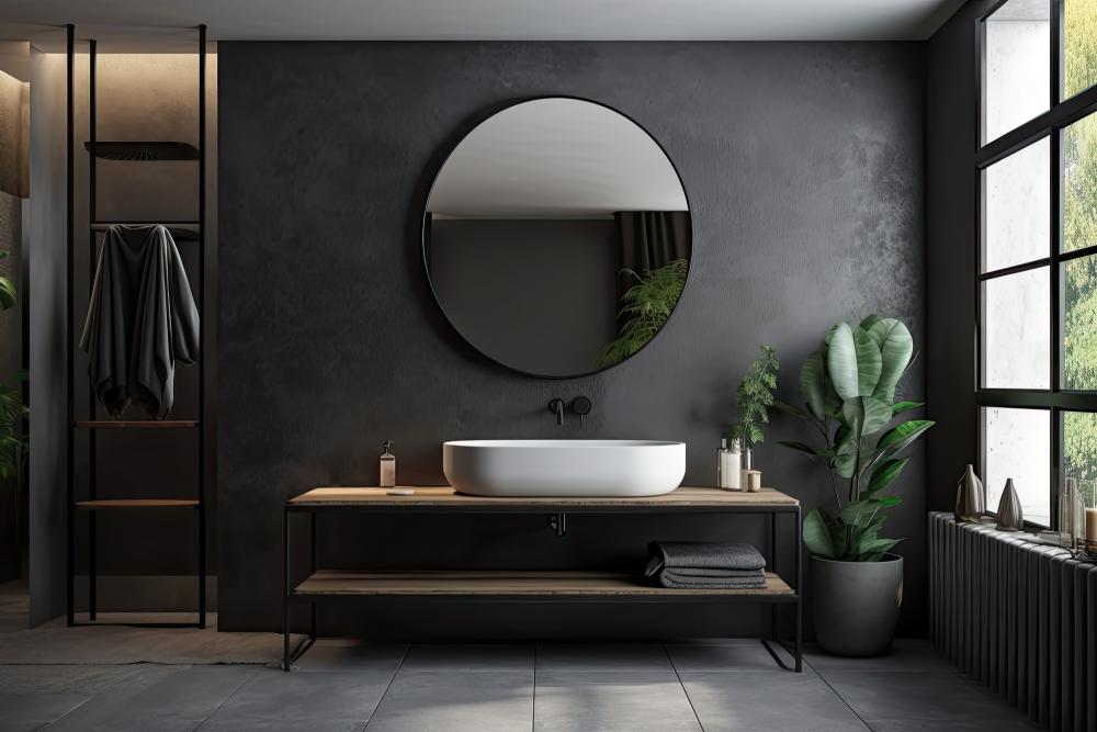 Modern Round Mirror. One Inch Deep Minimalistic Frame. Flush Moutned.