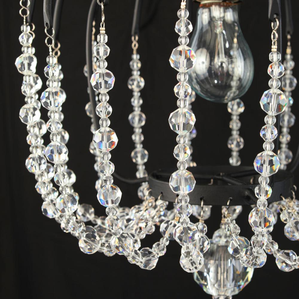 Parasol frames meet their crystal crush in this new pendant collection. Umbrella frames, carnival rides and birdcages clearly present in the design. But Continuing the frame lines with crystal is an unusal twist. Glam, coastal and cottage all coalesce together into one pretty, shimmery and airy pendant.