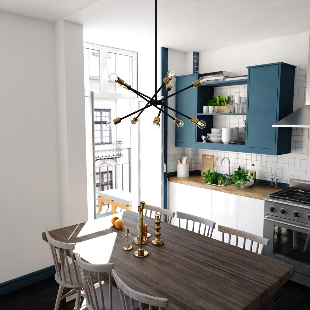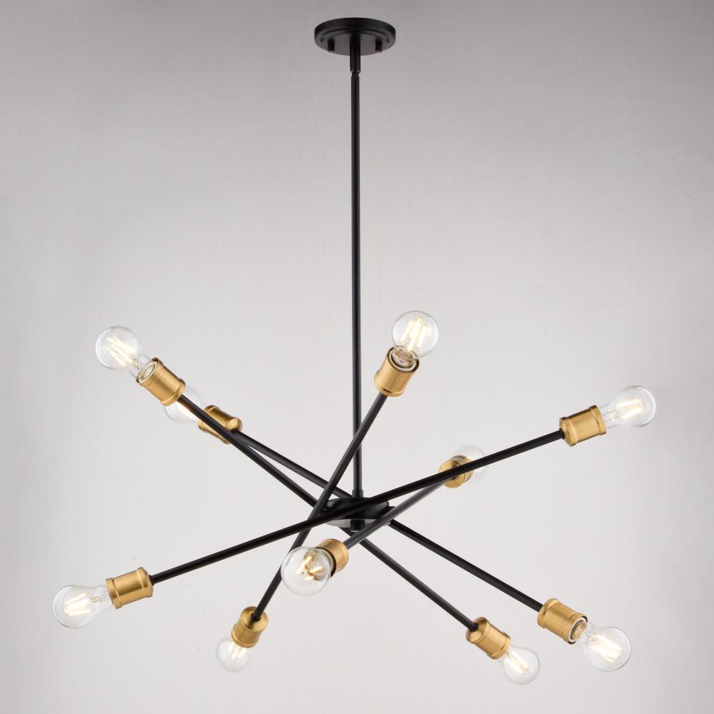 Experience the allure of timeless elegance with the Gresham Chandelier, a mid-century modern marvel that will redefine your space with its classic sputnik silhouette and striking two-tone finish. The matte black arms with antique gold contrasts, create a dramatic visual statement, perfect for adding a touch of sophistication to your dining room, living room, or foyer.