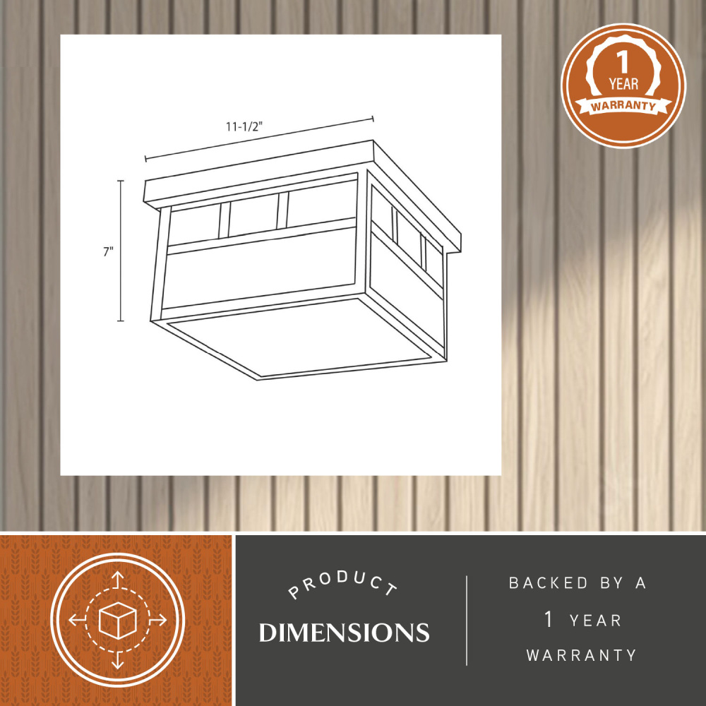 Flat strips of burnished bronze outline honey opal glass panes in the Mission collection. The simple design of this fixture has a mission style look perfect for Frank Lloyd Wright prairie inspired decors. This outdoor ceiling light is ideal for your porch, entryway, or any other area of your home.