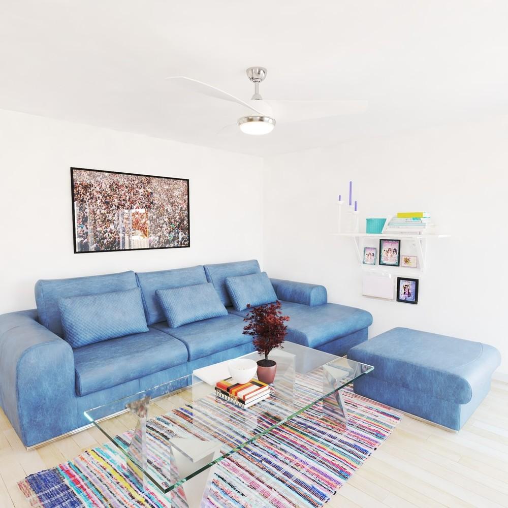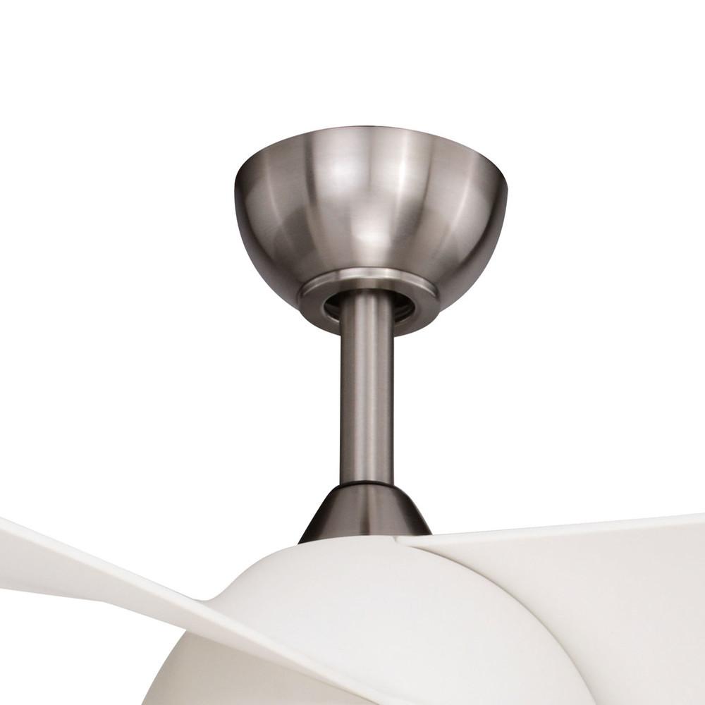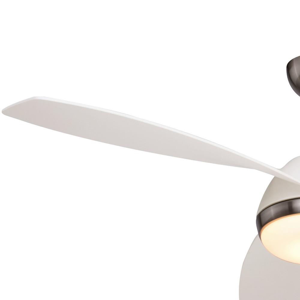Contemporary interior spaces are smartly adorned with the simple beauty of the Odell ceiling fan. Sleek, clean lines blend with an understated frosted integrated LED light source. The trendy matte white and brushed nickel finish give this collection broad appeal. High design aesthetic makes the Odell ceiling fan a most welcomed addition.