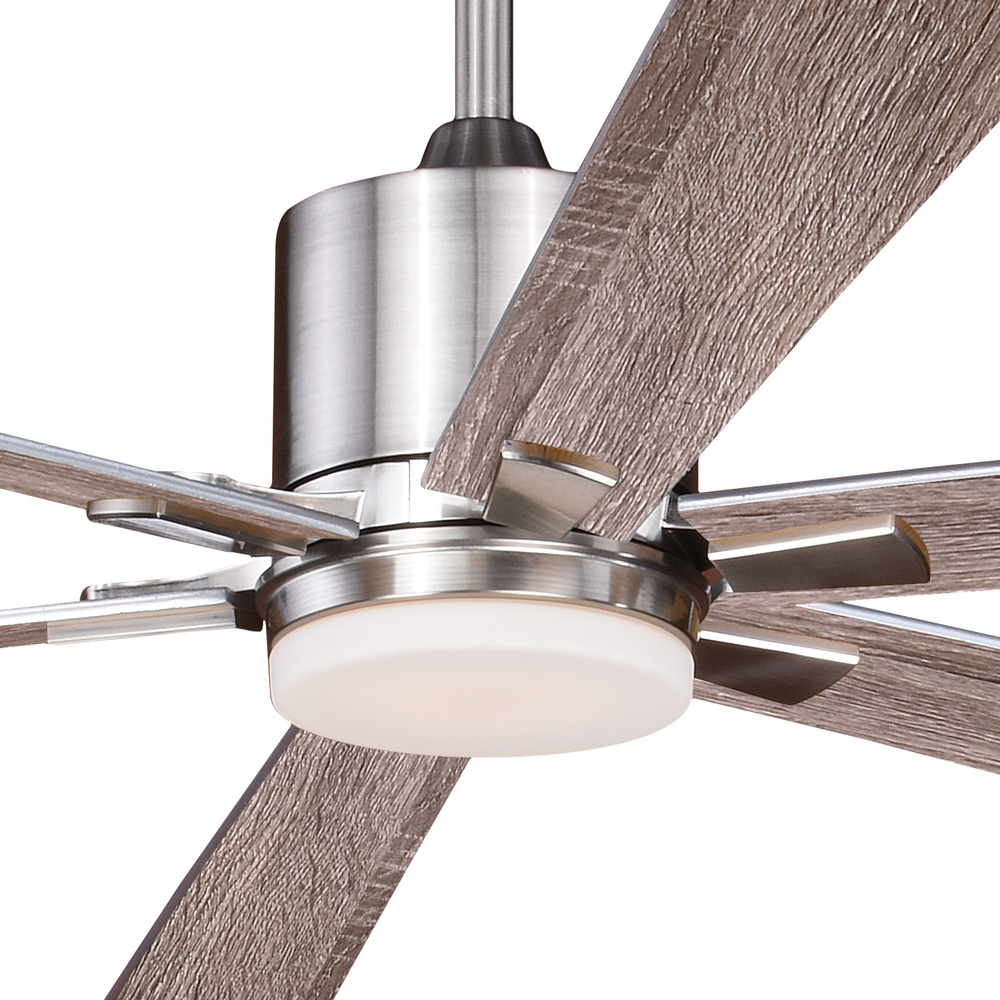 Cool meets warm in the perfectly balanced Wheelock ceiling fan. Reversible fan blades paired with a contemporary satin nickel finish evoke a high end yet earthy aesthetic. The Wheelock fan features a DC motor that consumes less energy and is significantly quieter than conventional fans. An LED light kit (included) provides energy saving, low maintenance and long lasting performance. This fan is compatible with sloped ceilings and includes a 6 inch down rod (longer down rods sold separately). Remote control included for added convenience. Exterior damp rated, ideal for interior and exterior spaces such as entryways, family rooms, or covered outdoor porches.