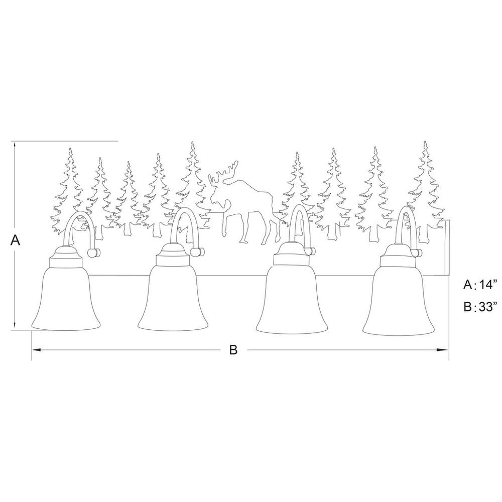 Evoking the spirit of the wilderness, this rustic themed light is clad in a burnished bronze finish and features silhouetted moose imagery atop glowing amber flake glass. It is a great choice for a vacation lodge, cabin or suburban home and will complement a variety of home styles: anywhere you want to bring an element of nature. This bathroom light is perfect over large or double vanities where there is only one outlet box. The full back plate creates the perfect solution to any space where a larger back plate is needed.