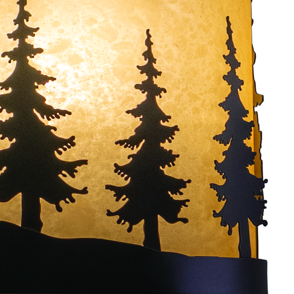 Evoking the spirit of the wilderness, this rustic themed light is clad in a burnished bronze finish and features silhouetted tree imagery atop glowing white tiffany style glass. It is a great choice for a vacation lodge, cabin or suburban home and will complement a variety of home styles: anywhere you want to bring an element of nature. This versatile light is outdoor damp rated and can be used indoors as well as outdoors. Mount these lights on your porch, hallway, or entryway and experience this stylish look for yourself.