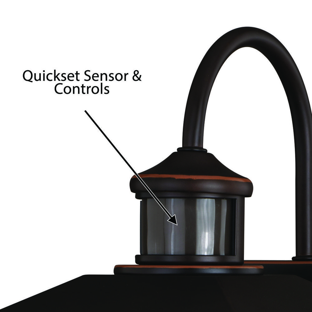 Evoking the spirit of the wilderness, this rustic themed light is clad in a burnished bronze finish and features silhouetted tree imagery atop glowing white tiffany style glass. This outdoor wall light is ideal for your porch, entryway, garage, or any other area of your home. Dualux patented dual-level security lighting is outdoor lighting made smarter—brighter light at dusk, dimmer at night, brightening instantly when it detects motion. Designed to reliably and effortlessly enhance your home’s beauty, security and efficiency from dusk to dawn with its built in motion sensor and photocell. This fixture works with any dimmable incandescent or halogen bulb and many dimmable LED bulb models.