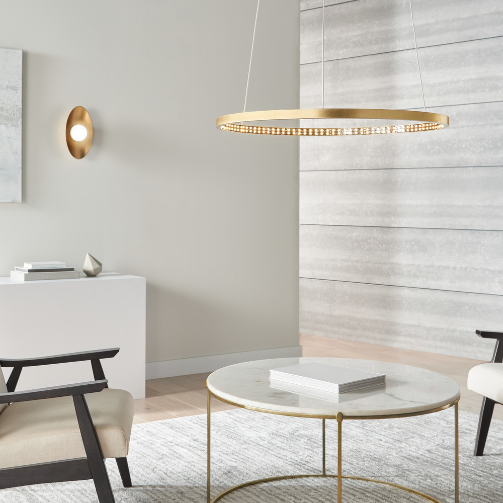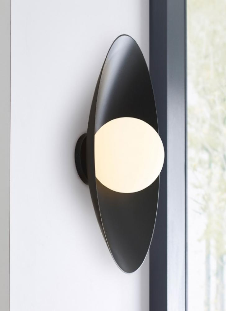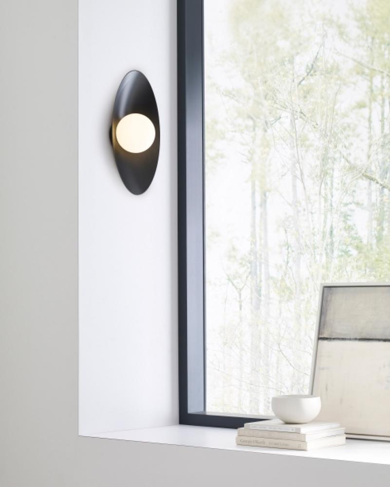 Joni 13 by Sean Lavin features a glowing integrated LED that sits against the backdrop of a simple elliptical reflector. Designed with a contemporary aesthetic, Joni 13 has heightened visual interest with two-tone finishes designed for both indoor and outdoor applications. Available in modern finishes. Complete the look with the extended Joni Family by coordinating with the Flush Mount and Pendants. Lamping options are compatible with most dimmers. Refer to the Dimming Chart for more information.