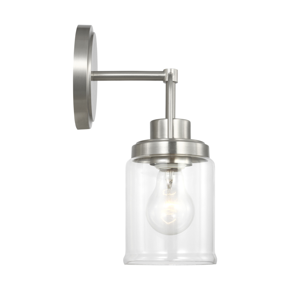Crafted with Steel in a Brushed Nickel finish with clear glass shade