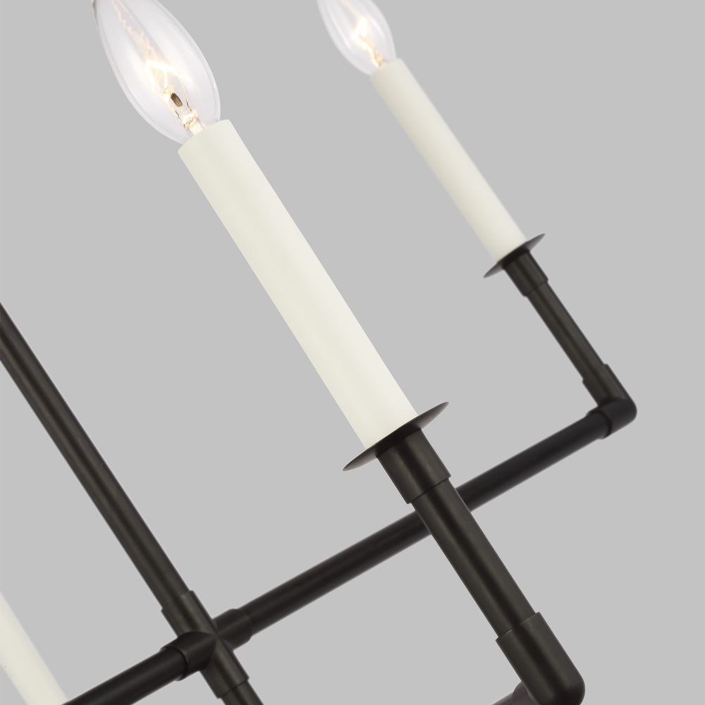 Chapman & Myers designed this modern series with sculptural sensibility, crafted of steel with white candle holders to complete the design. Bayview is available in Aged Iron or Polished Nickel finish and the assortment includes: medium, large and linear chandeliers, left and right sconces and a single sconce. Perfect for a dining area.
