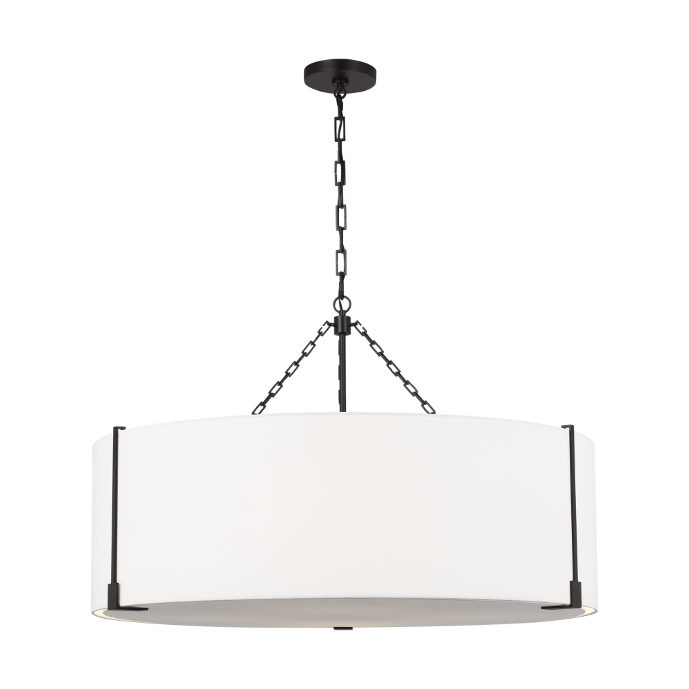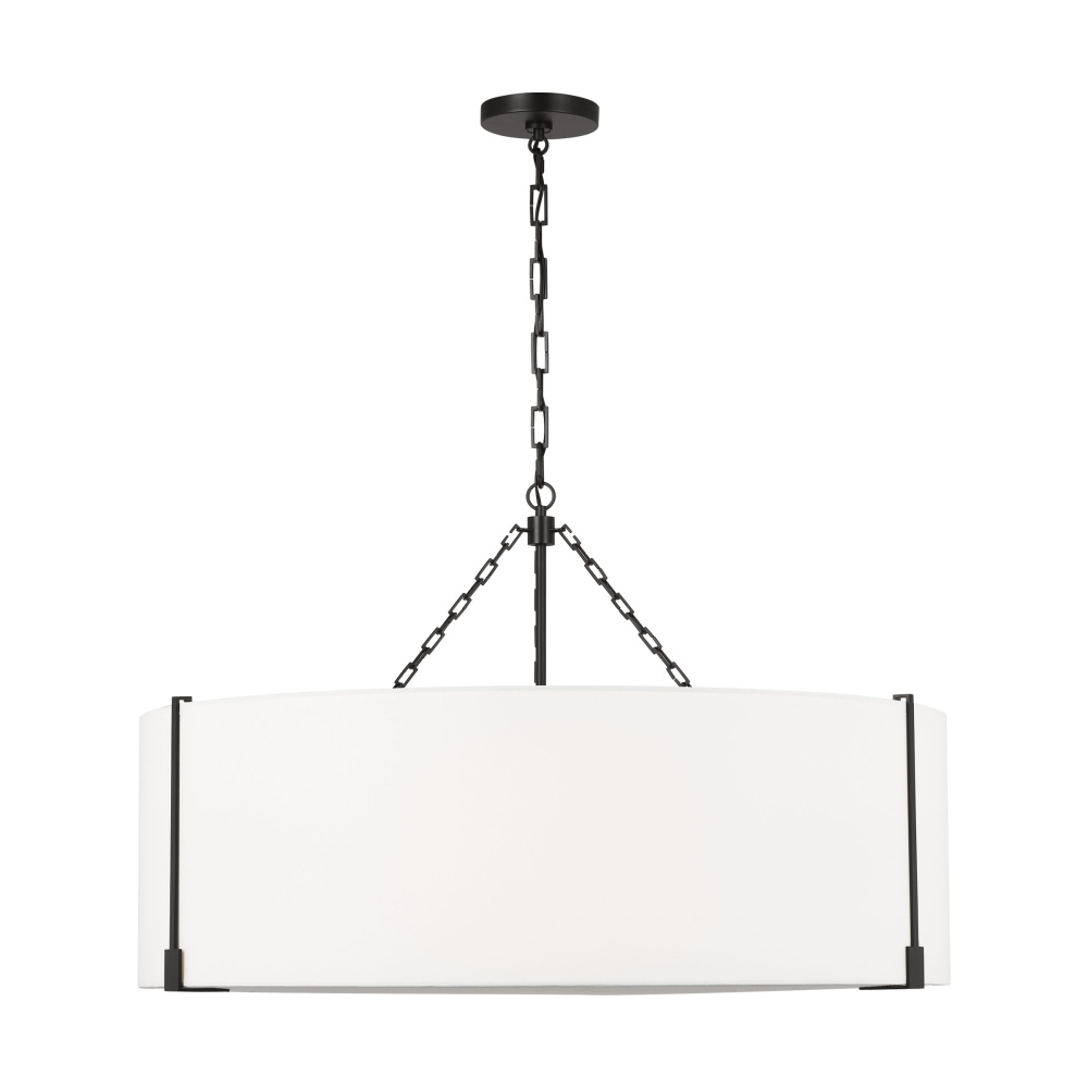 Crafted with Steel in a Aged Iron finish with white linen shade