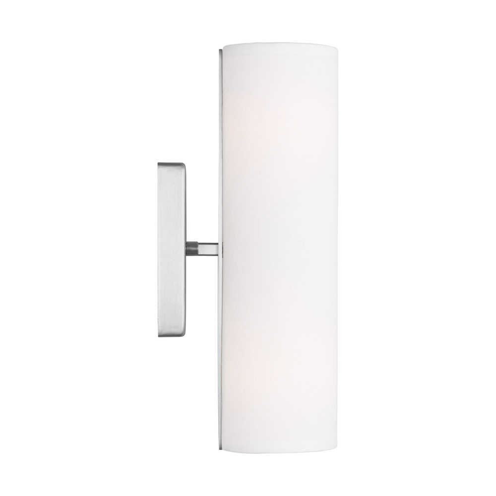 Sleek and modern, this contemporary collection features cylindrical linen shades and a visible flat spine for a clean look. It features a candelabra-style fixture with four sleek arms referencing mid-century modern design. On the end of each arm, frosted glass shades direct soft light in both directions.