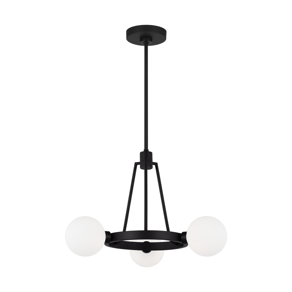 The Clybourn three light single tier chandelier in Midnight Black is an industrial yet minimalist design, making this fixture perfect for an eclectic living room or over a modern dining room table. Milk Glass gives the Clybourn series a more current look.