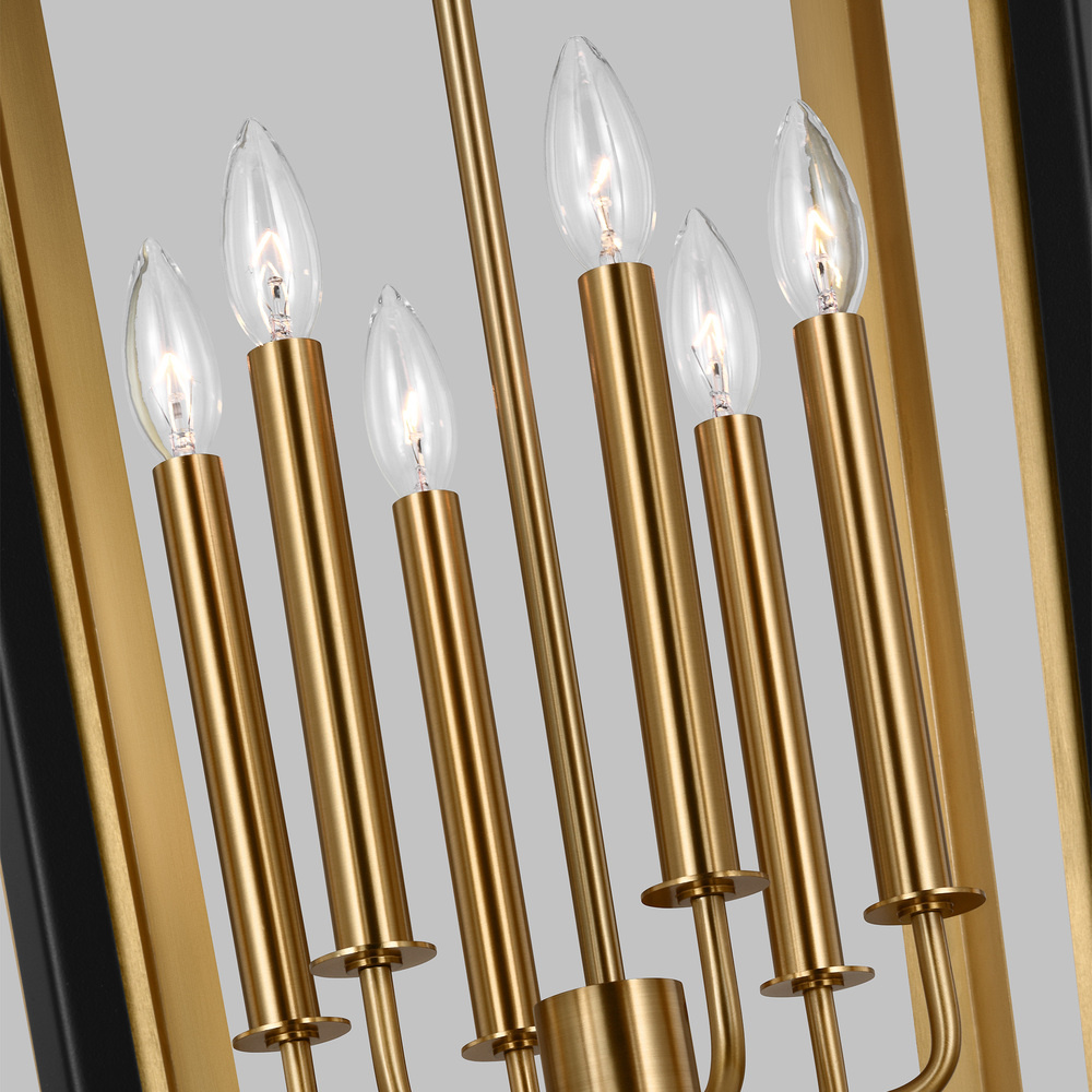 The Curt Three Light Lantern by Alexa Hampton is a modern take on an antique lantern. Elegantly crafted of steel with a Matte White or Midnight Black finish and accented with golden details. A stunning Hexagon shaped hub adds drama to the design.