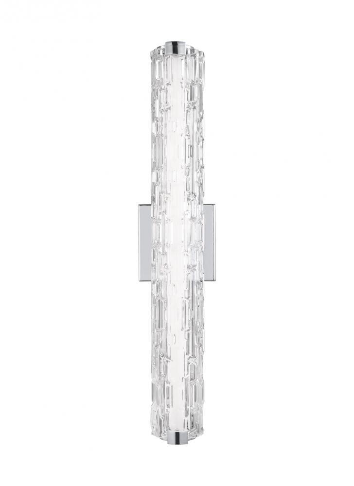 The Cutler one-light wall sconce in satin nickel offers shadow-free lighting in your powder room, spa, or main bathroom. The sleek linear profile of the Cutler Collection creates a perfect, contemporary backdrop for two unique glass options. Tiles of either Clear Crackle glass or Clear Staggered Rock glass are set in an organic version of a subway tile "look" and allow the LED light to shine through, adding rich sparkle to the room. Cutler is available in two finish options: Chrome and Satin Nickel.
