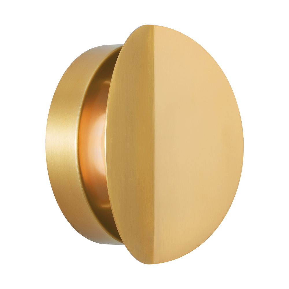 Dots are iconic to the kate spade brand—a simple and playful graphic motif. Dottie takes an iconic kate spade dot motif and cuts it into metal—creating a playful ambient light effect. A classic metal drum shade with an extra twist of perforated pattern. Dottie takes a single dot/circle shape and faceted the surface taking inspiration from kate spade jewelry and hardware architecture. The faceted dot acts as a shield to the soft ambient light emanating all around. This graphic and ambient sconce would be great in a powder room, down a hallway in multiples, or used in asymmetrical playful ways as a subtle graphic ambient light mixed among artwork or other playful compositions of décor.