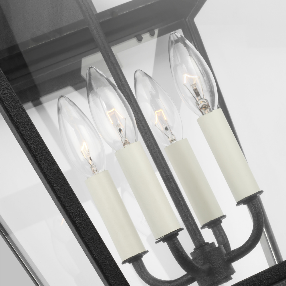 Falmouth by Chapman and Myers outdoor lighting design mimics a vintage gas lantern, with a classic, tapered box shape. The clean lines of the elegant frame have an uncluttered silhouette that showcases the beautiful panels of clear glass.