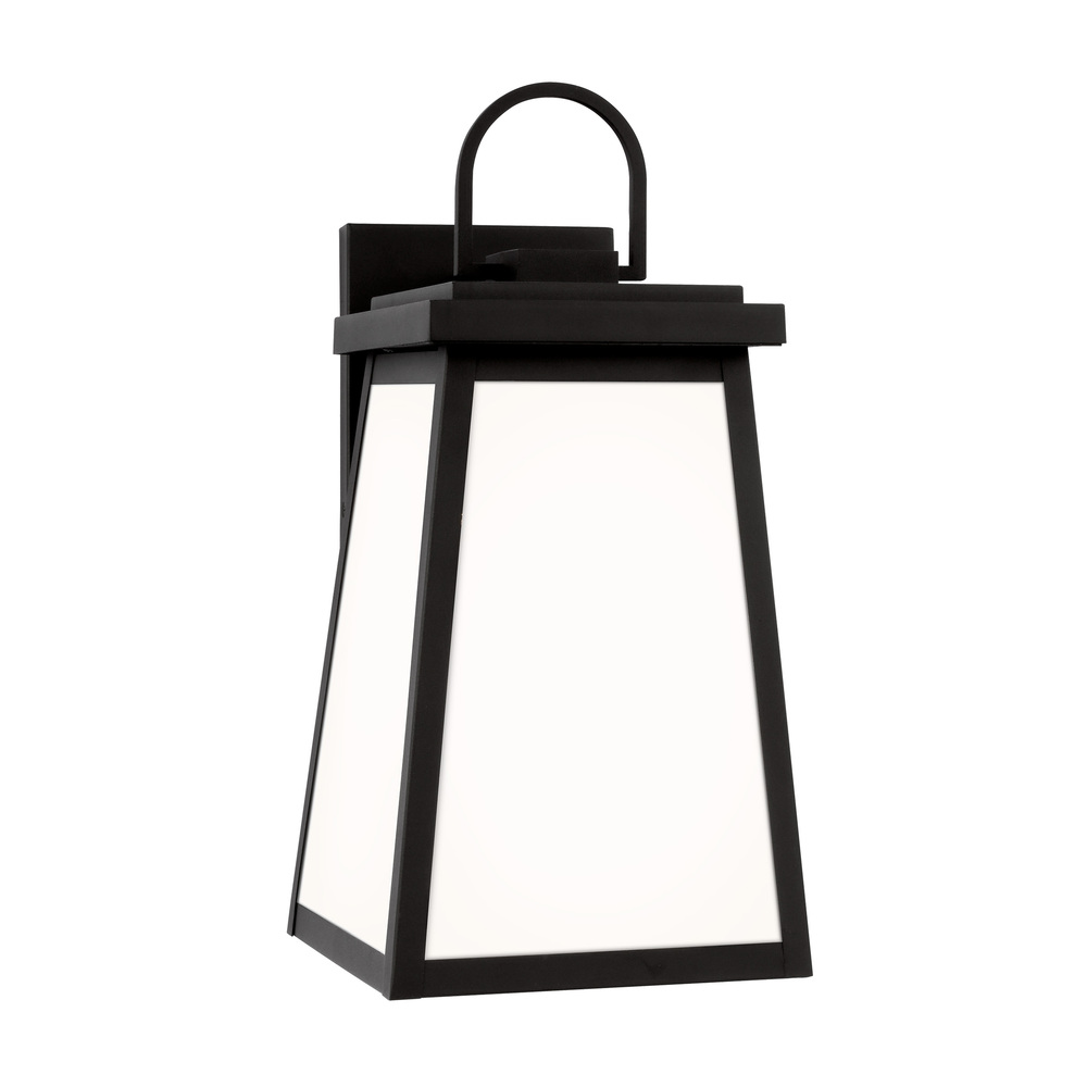 Founders modern 1-light LED outdoor exterior large wall lantern sconce in black finish with clear gl