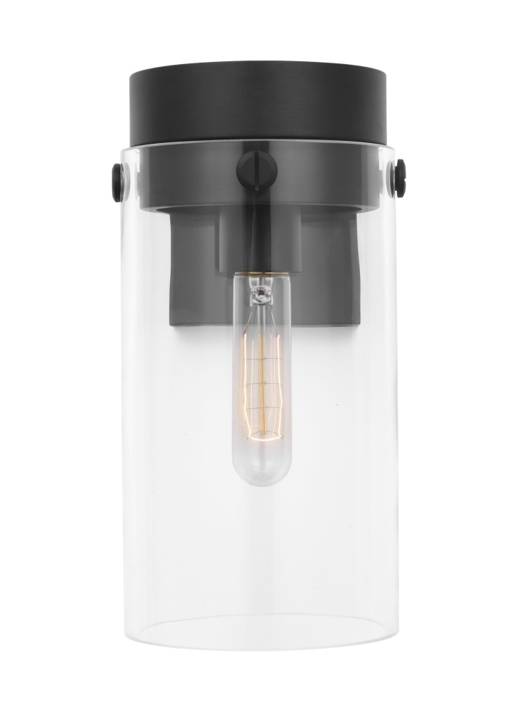Crafted with Steel in a Aged Iron finish with clear glass shade