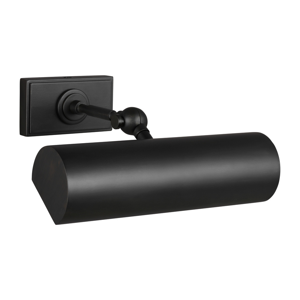 The Kenyon 10" Picture Light by Chapman & Myers were designed to be highly versatile in their application, at home in any interior. They have classic half round pharmacy shades which are mounted to a cylindrical metal stem with a differentiated stepped detailing. The picture lights have an architecturally inspired medallions where the arms mount to the rectangular backplate. Kenyon has a smooth clean metal shade that will bring the perfect light to your works of art. Available finishes include Aged Iron and Burnished Brass.