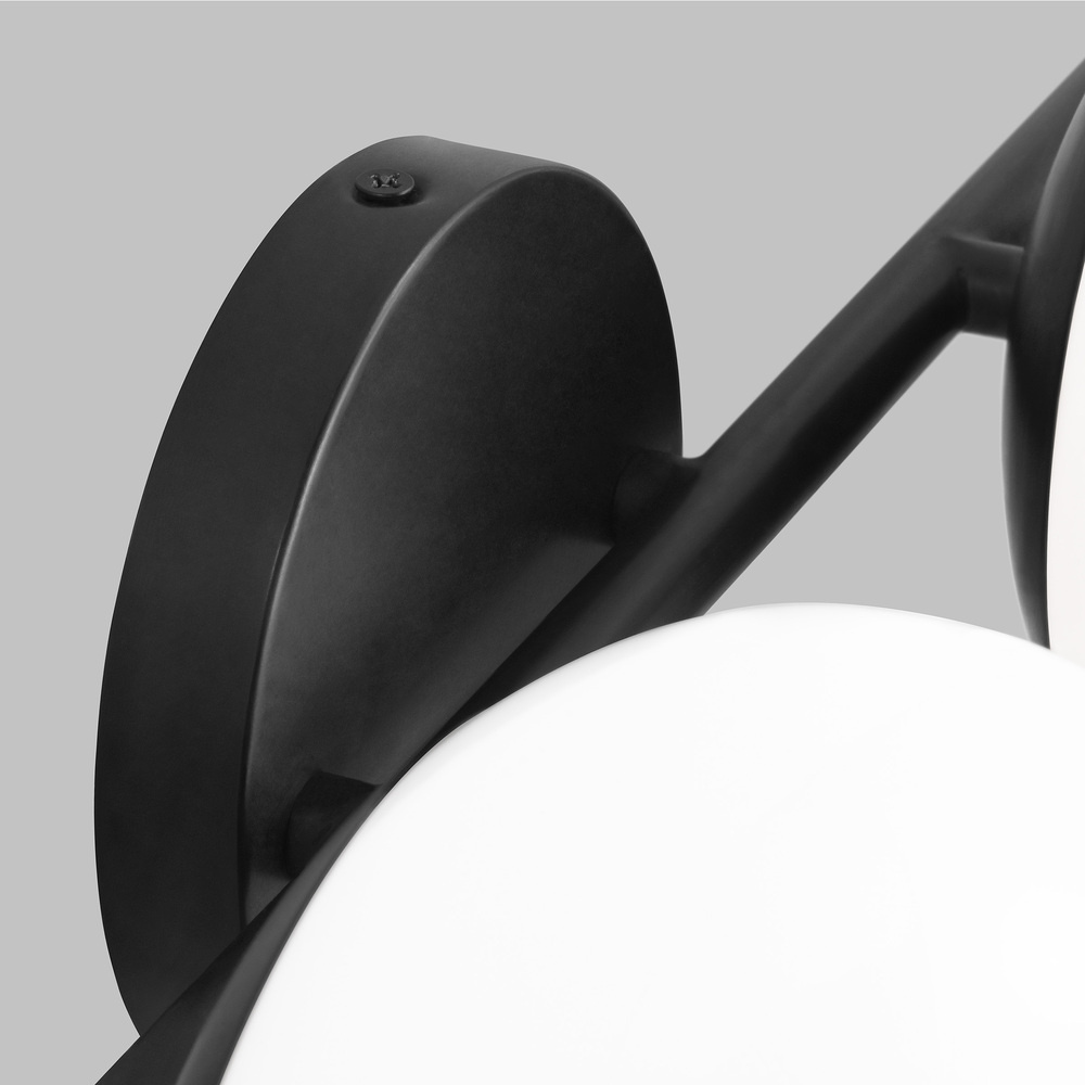 The Lune mid-century modern collection from Ellen DeGeneres is offered in two finishes including Aged Iron and Burnished Brass. The symmetrical abstract of the silhouette is deceptively simple with your attention being drawn to the milk glass shade featuring no visible hardware. We are expanding this floor lamp to a full series and adding an Aged Iron finish option. Lune has a simple yet sophisticated design. The slender metal frame features Aged Iron or Burnished Brass arms that are complete with a white glass globe at each end. The brass accents handsomely complement the black or brass frame to create a mid-century modern vibe.