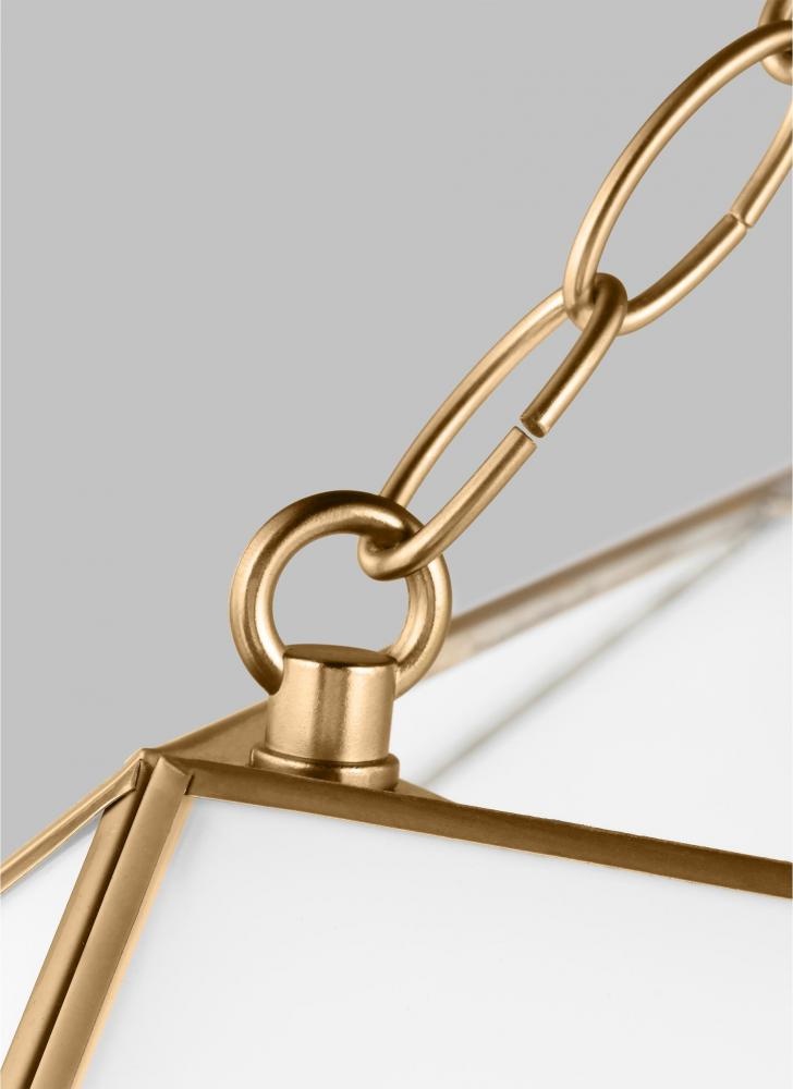 Featuring a lantern-like design with curved arms connecting to a cube-shaped frame, the Morrison pendant series by makes a perfect statement piece over a kitchen counter or dining table. This versatile design comes in Small, Medium or Large Lantern sizes, plus Small and Large Flush Mount. It is available in Clear or White Glass with Antique Nickel, Brushed Nickel or Satin Brass finish. Morrison is supplied with wire pre-laced through chain and sloped ceiling mounting hardware to customize your installation.