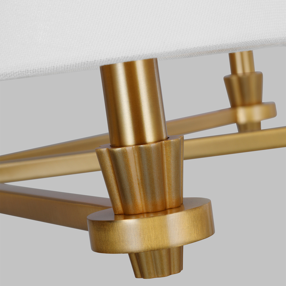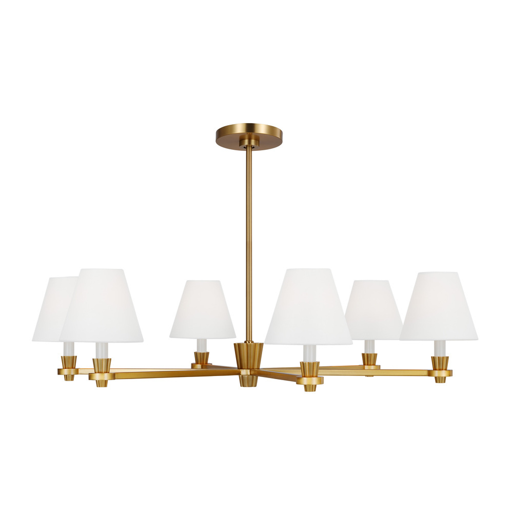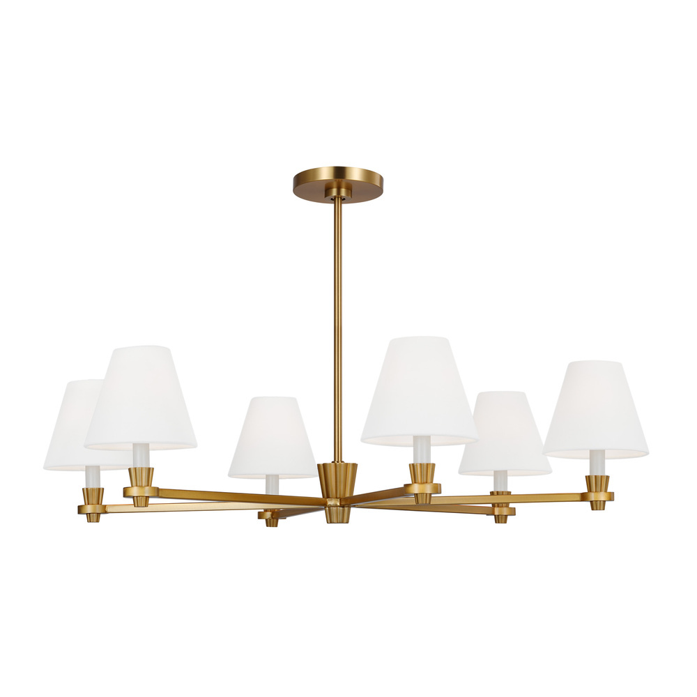 Paisley is a classic shaded series with intentional contemporary details. On the chandelier, the eye is instantly drawn to the hub, whose soft riveted design extends to candle tubes that share the same design element.