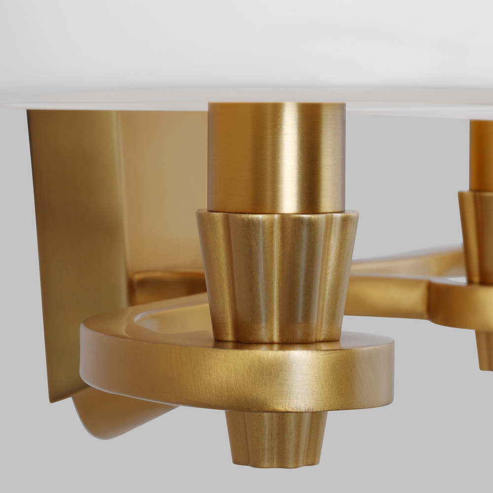 Paisley is a classic shaded series with intentional contemporary details. On the chandelier, the eye is instantly drawn to the hub, whose soft riveted design extends to candle tubes that share the same design element.