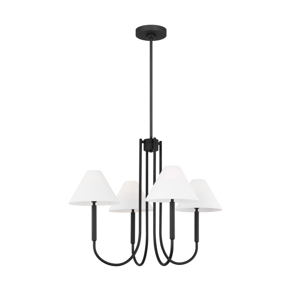 Porteau by Drew & Jonathan Scott is a sleek, chic, contemporary design featuring an updated j-arm style. Made from steel, Porteau features a classic silhouette with curved arms branching from a central rod. Each arm is topped with a candle-style sconce for 60W candelabra bulbs (sold separately), while small fabric drum shades diffuse light for a warm glow.