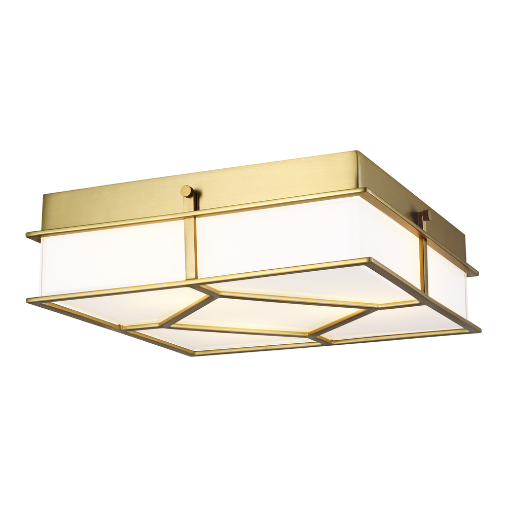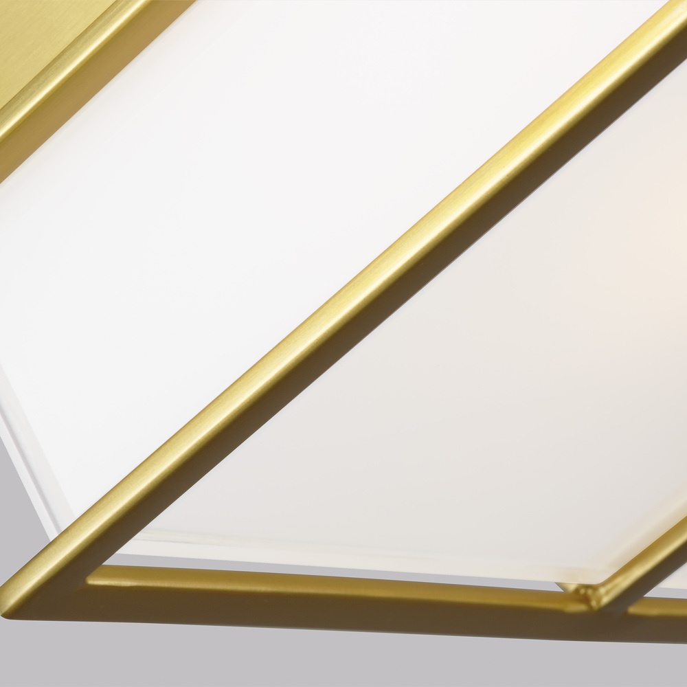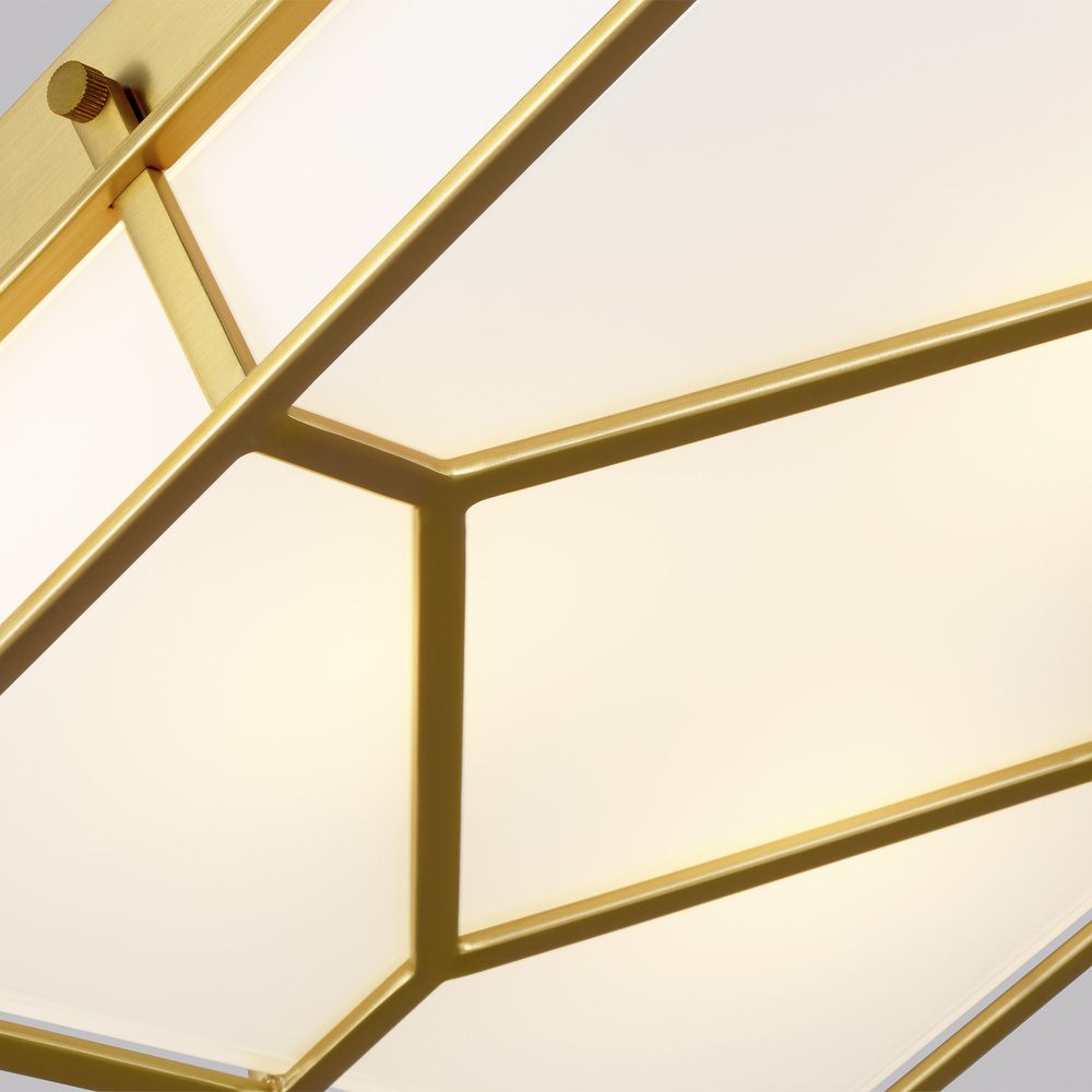 Named after a light-giving, the Alexa Hampton Transom three light flush mount fixture in burnished brass is inspired by the simple lines of mid-century modern design. The ornamental transom window typically placed above a door, features a square paneled glass frame and angular geometric design. With a frosted glass shade framed by steel, this fixture casts a soft gentle glow in any defined space in your home. The Transom flush mount is available in the burnished brass and polished nickel finish. Alexa Hampton is an industry force who honors tradition and commits to the future, providing smart, stylish, design-rich solutions for every aspect of the home. AH Alexa Hampton Collection features fresh takes on traditional looks, beautiful and unique hand applied finishes, and stunning thoughtful inspired pieces.