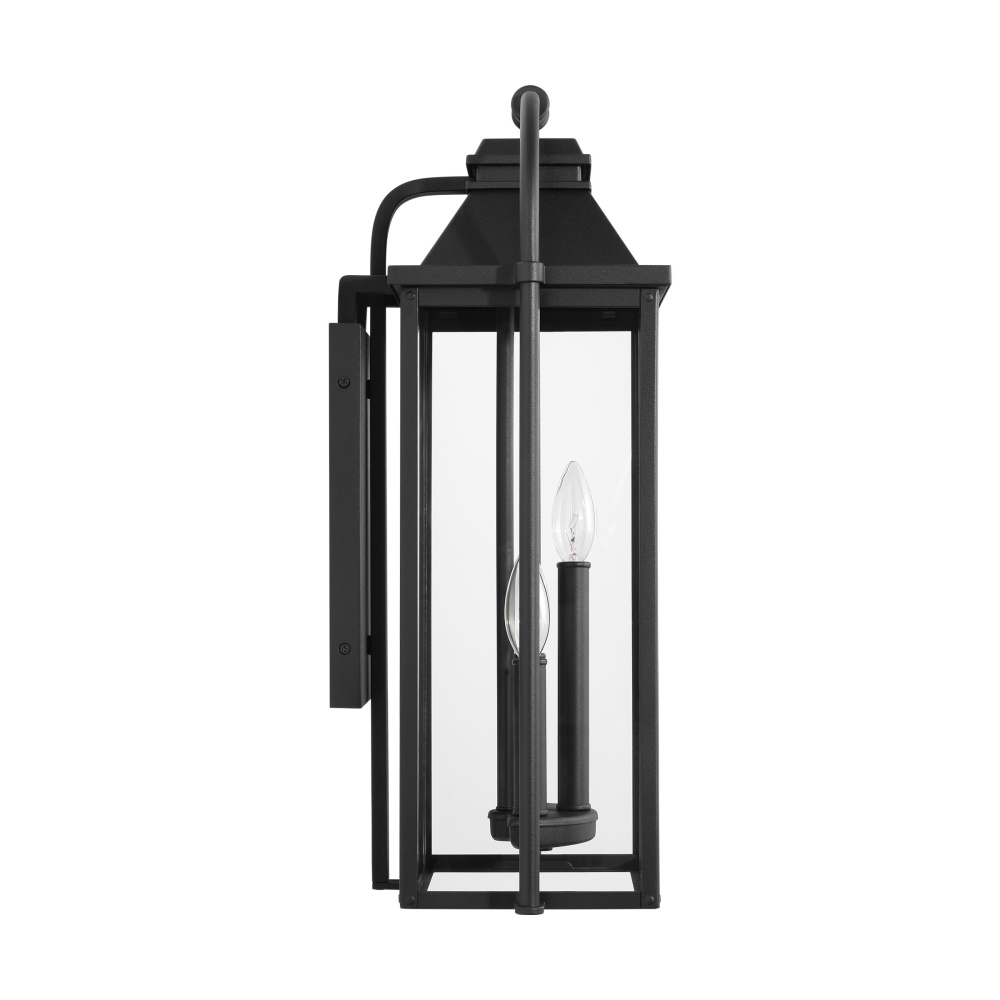 Designed by Sean Lavin, the Wellsworth three light outdoor wall fixture in textured black creates a warm and inviting welcome presentation for your home's exterior. A subtle interplay of traditional design elements and nautical influences creates the charming visual approach to the Wellsworth outdoor collection by Visual Comfort Studio. Available in three finishes and two different aesthetics. Antique Bronze finish paired with Clear Seeded glass creates a more traditional look to these outdoor light fixtures, while Burnished Brass and Painted Brushed Steel finish and Clear glass reflect a more contemporary approach. The Wellsworth collection includes a 3-light outdoor pendant, a 3-light outdoor post lantern, and 3-light small and medium outdoor lanterns, as well as a 4-light large outdoor lantern. Cast aluminum construction ensures durability. Wet Rated.