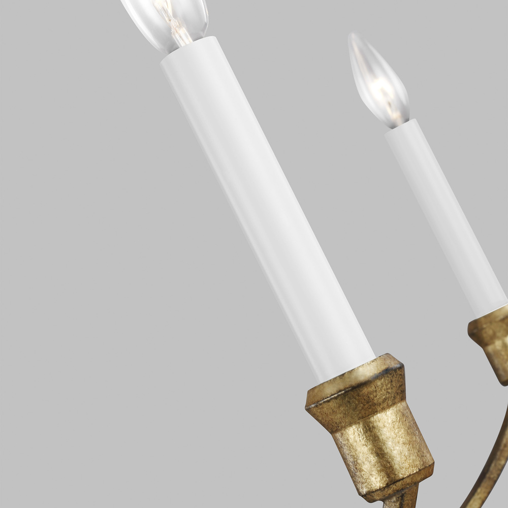 The Westerly twelve light multi-tier chandelier in antique gild makes a stunning addition to an entryway, great room, or above a large dining table. Designed by Chapman & Myers, Westerly features flowing arms and an exposed candelabra. The sculpted lines and hook with loop detail at the top and on the canopy lend designer flair and polish. Select the best size for your space and tailor the look with either Antique Gild for a chic, metallic feel or Smith Steel for a more rustic tone.