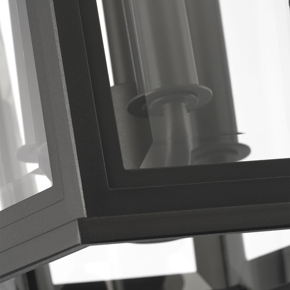 The Witley outdoor series by Sean Lavin Lighting is reminiscent of traditional outdoor oil lanterns with several individual panes of glass coming together to create facets that catch the light. Generous proportions in the Textured Black finish and Clear Beveled glass provide generous illumination to welcome guests and brighten passageways. The assortment includes mini, small, medium, large, and extra-large outdoor wall lanterns, a medium pendant, and a 3-light outdoor post lantern.