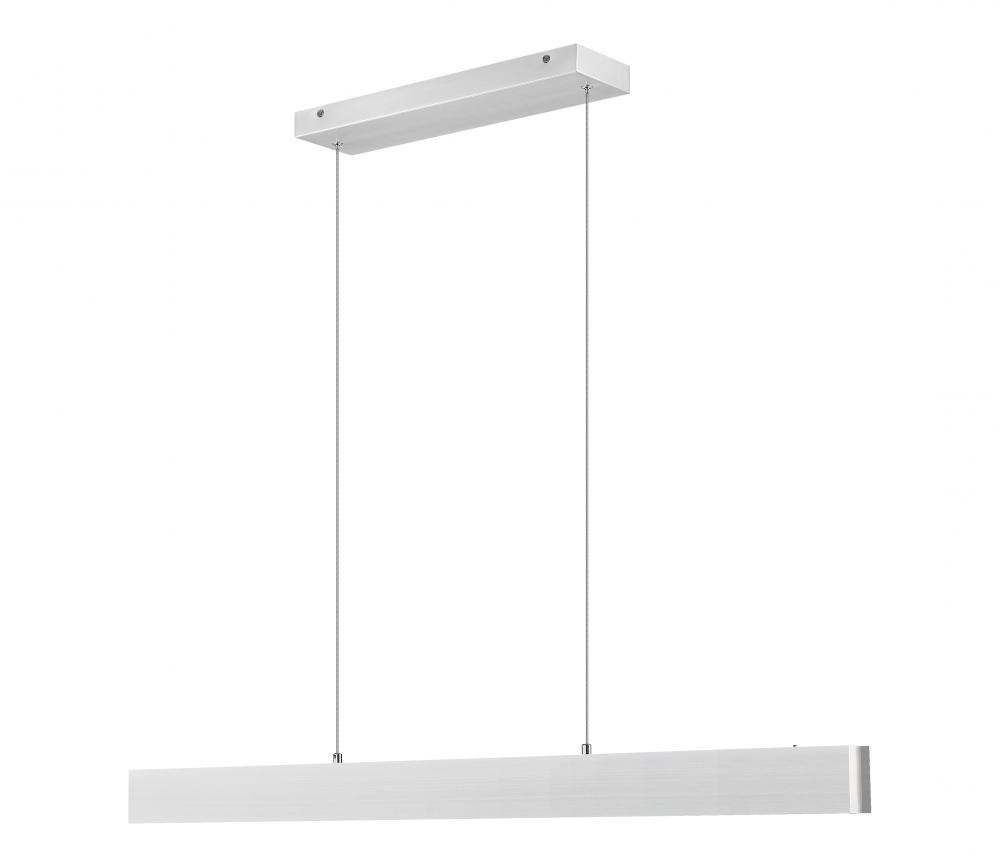 Put finishing touches on your kitchen or game room with a modern linear LED chandelier. Its a sleek, refined design with clean lines and a brushed nickel finish aluminum framework. Integrated LED lighting sits behind a frosted diffuser, adding dimmability and five light color selections for optimal versatility in your modern home.