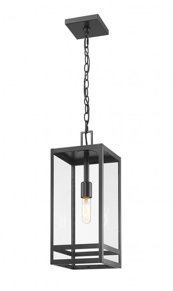Suspending from a covered patio or gazebo, the Nuri one light outdoor chain mount ceiling fixture offers a clean, crisp aesthetic with linear design elements. Go fully modern with a hint of transitional vibes in a light featuring linear styling of a black finish steel frame and bulb mount, with a matching suspension chain and ceiling mount. Clear glass panels provide a full interior view of a c harming slender bulb mount.